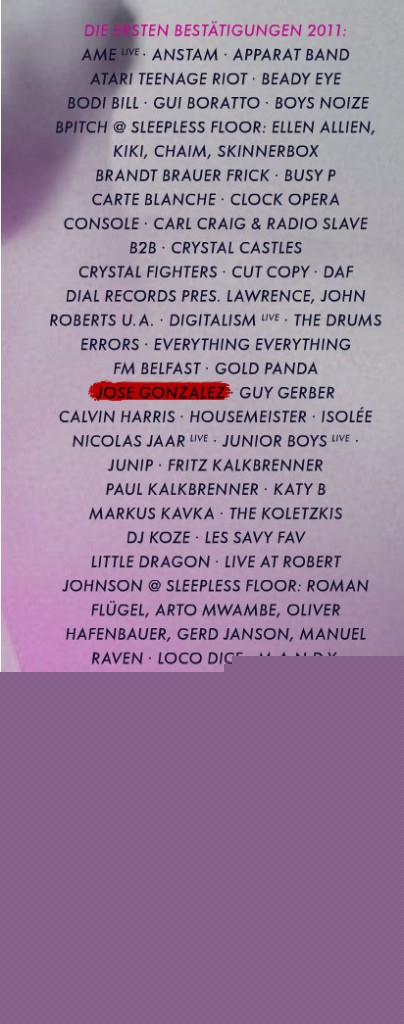 - Melt!: Anzeige verrät Jose Gonzales und Patrick Wolf als TeilnehmerIn der aktuellen Intro #191 (Seite 80) lassen sich in einer Werbeanzeige wieder ein paar Namen finden, die derzeit noch…