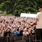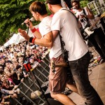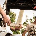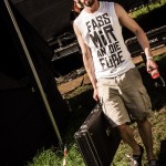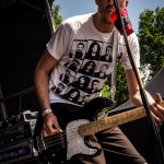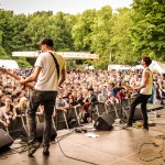 Die 15 Minuten Spielzeit sind rum. Merchandiser Mo verkauft im Bühnengraben CD’s während die Band ihr Equipment, unter Einwirkung knallender Sonne und noch knallenderen Kaltgetränken (bis auf Max, der muss ja schließlich fahren) in den Bandbulli räumt. Viel Zeit ist nicht. Wenige Kilometer weiter, in Wesel nämlich, wartet eine weitere Show auf Montreal. Die Band ist Co-Headliner des Eselrock Festivals. Einer umsonst + draußen Veranstaltung in einem wunderschönen Parkgelände.