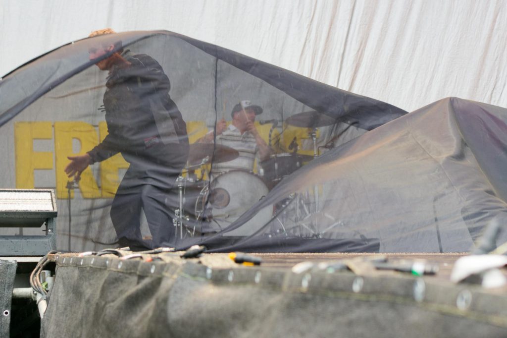 Wir haben hier mal kurz 20 Minuten Weltuntergang gehabt. Moderater Regen gingin Starkregen über. Glücklicherweise wurde der Wasserhahn genau 10 Minuten bevor Nothing More die Bühne betraten geschlossen. Nun warten wir auf die nächste Regenwelle.
