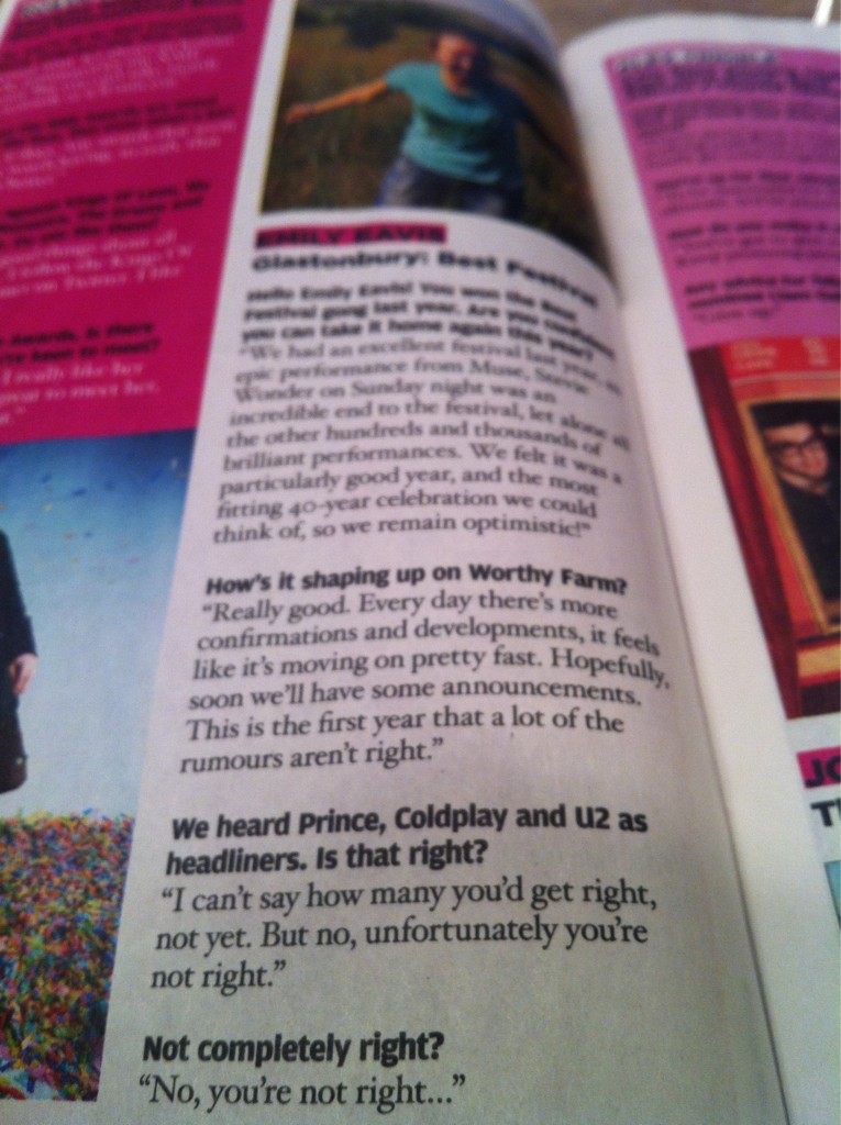 Emily Eavis, Tochter des Glastonbury-Gründers Michael und Mitveranstalterin, räumt in der Gerüchteküche des Glastonbury Festivals 2011 auf. In einem Interview…