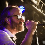 The National tragen das Publikum fast 2 Stunden lang mit einer einzigartigen Souveränität einmal quer durch ihr Gesamtwerk: neben vielen Stücken des 2013er Albums ‘Trouble Will Find Me’, wie das herausragende ‘I Should Live In Salt’, ‘Graceless’ oder ‘Pink Rabbits’ finden sich wohlbekannte Stücke der beiden direkten Vorgänger ‘High Violet’ und ‘Boxer’. Nicht nur einmal geht ein Raunen durch die Reihen, als das allen vertraute Intro von ‘Bloodbuzz Ohio’ ertönt und sich kollektiv Gänsehaut verbreitet. Das großartige Songwriting, das der Menschheit Zeilen wie I never thought about love, when I thought about home schenkte, wird live mit einer Intensität zum Leben erweckt, wie man sie selten miterleben darf: Sänger Berninger lässt seinen markanten Bariton in allen Facetten erklingen, sowohl zart und gefühlvoll stets mit geschlossenen Augen, als auch wie ein Besessener von Bühnenrand zu Bühnenrand wandernd, wild gestikulierend und seine musikalischen Mitstreiter und sich selbst lautstark antreibend. Das Weinglas als Markenzeichen muss während der Performance dranglauben und liegt zerschmettert auf der Bühne, der Verstärker wird umgekippt und die Schnapsflasche inklusive Cooler fliegen am Ende quer über die Bühne.
